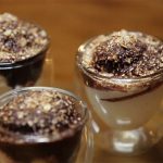 - Deite para uma taça e decore com a banana e os morangos às rodelas, manteiga de amendoim, lascas de coco, chocolate preto picado e com o mix de sementes.